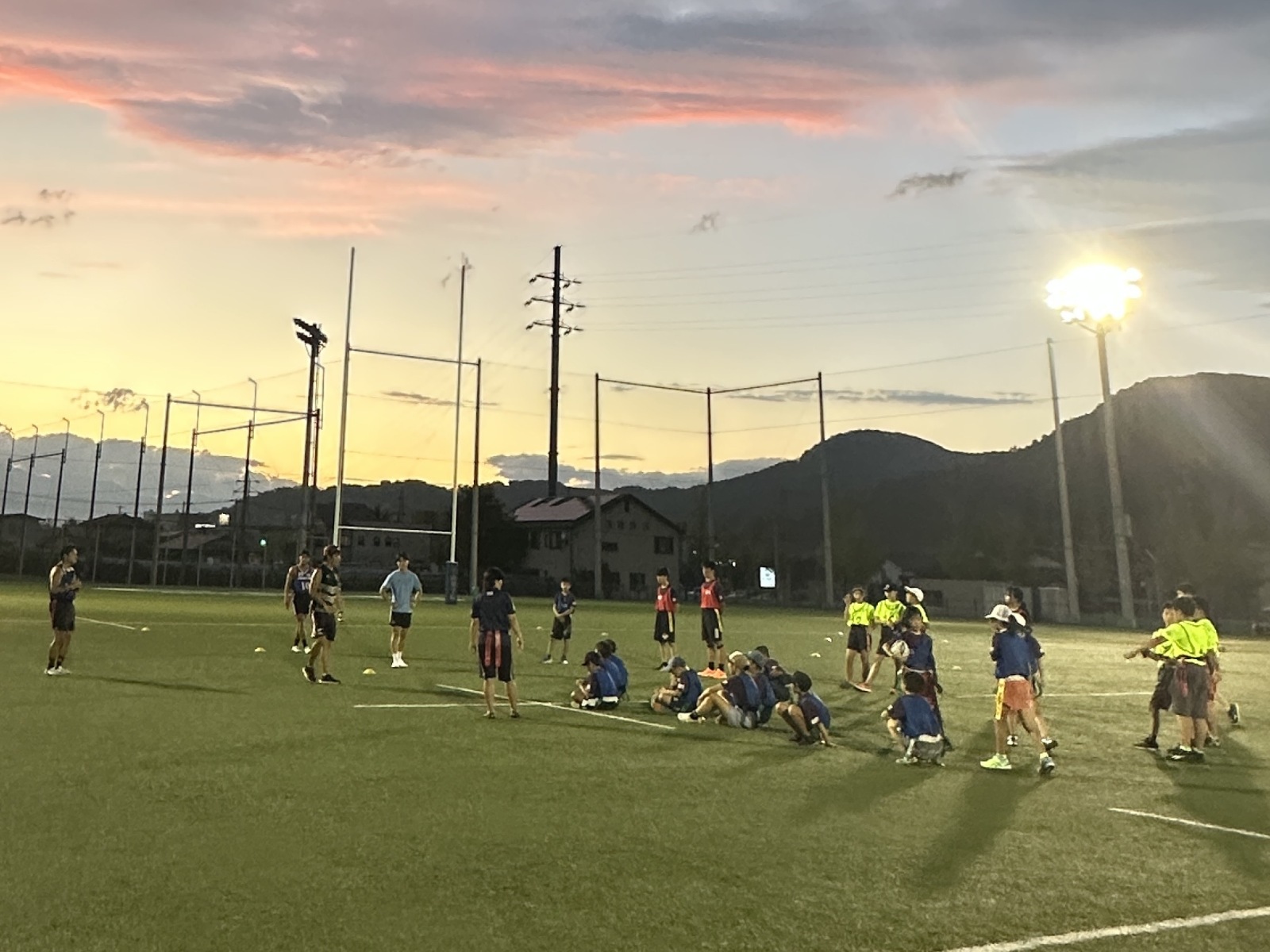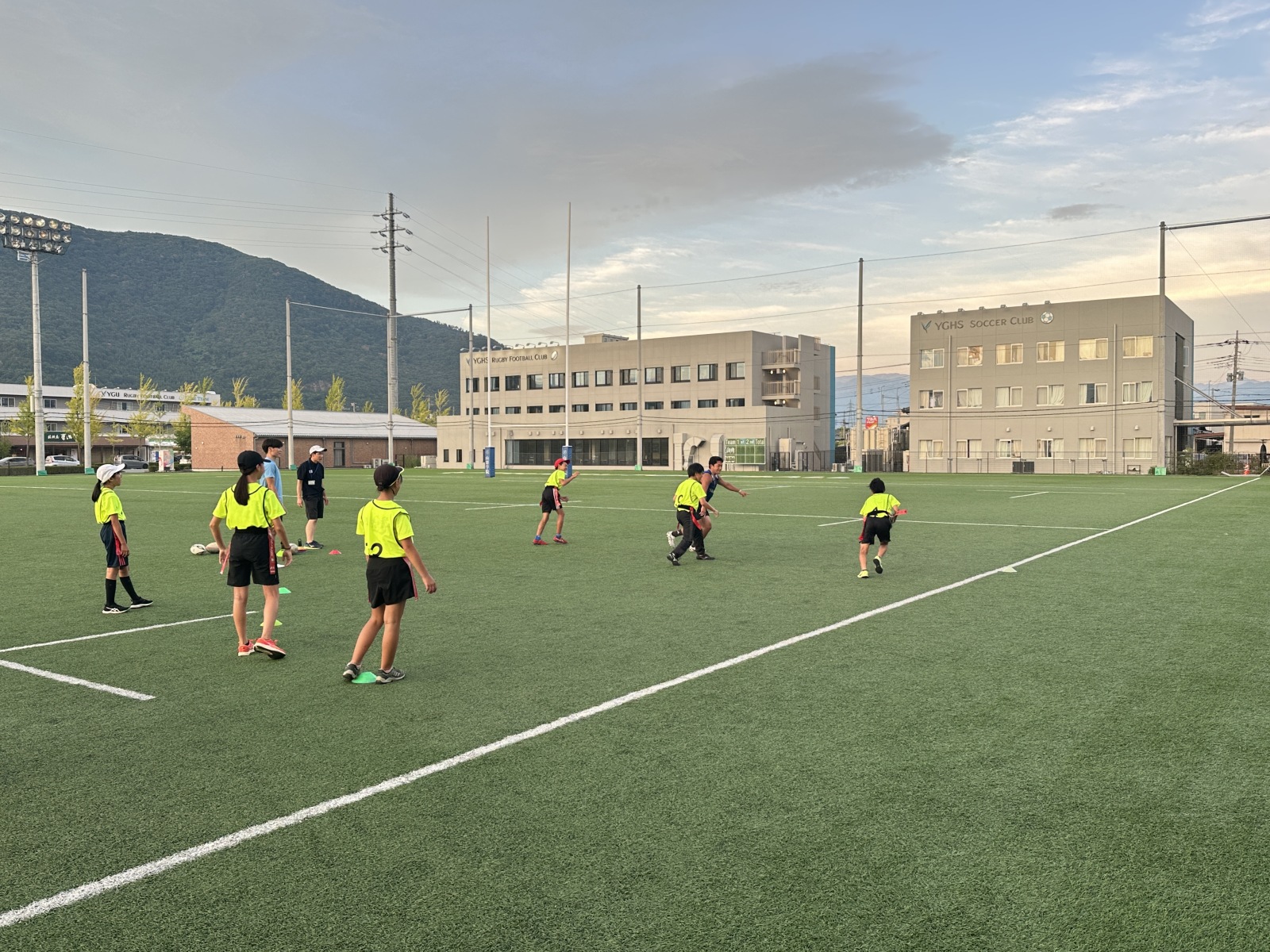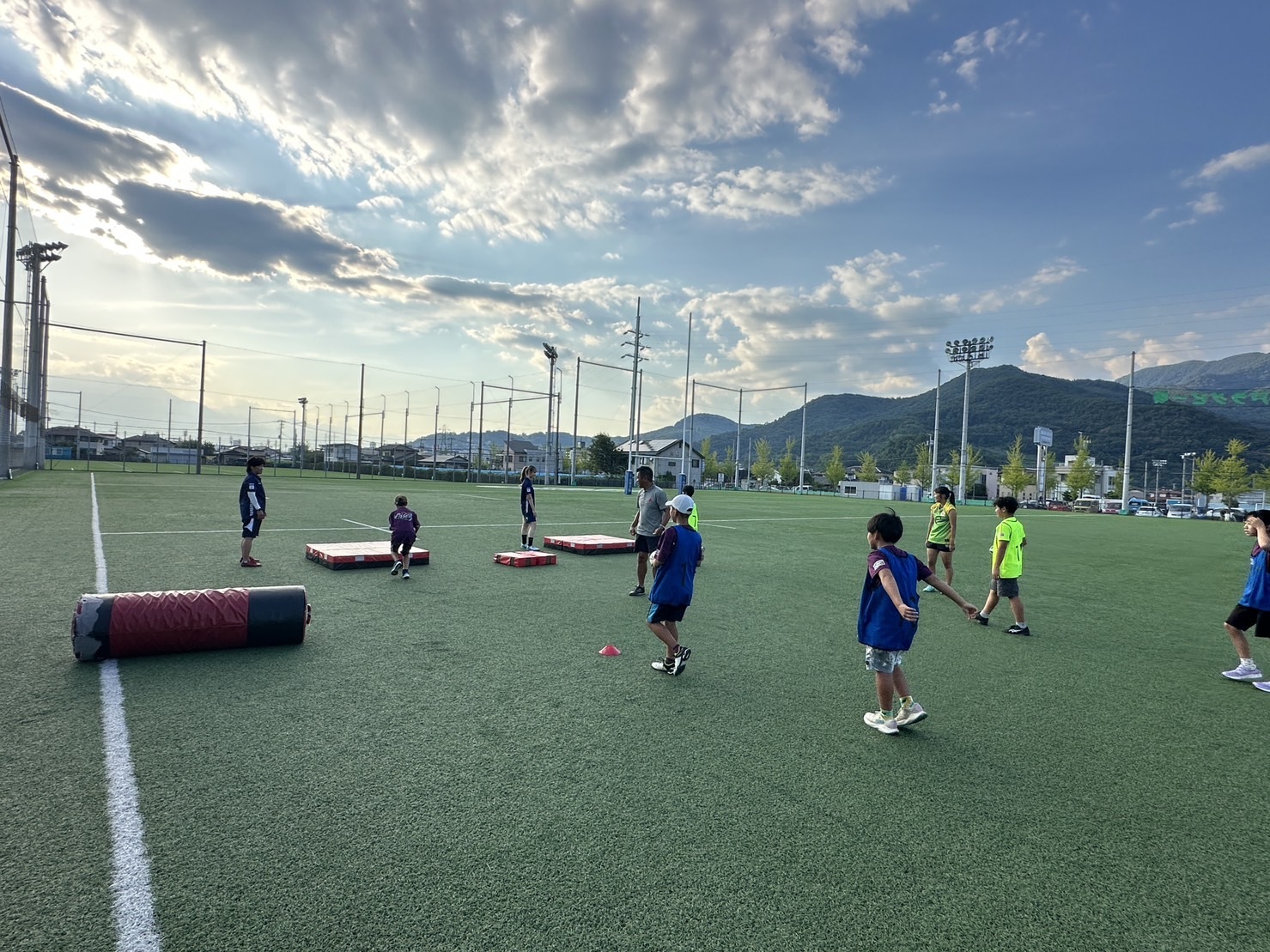 小学5〜6年生、約40名、中学生3名が参加し、ラグビーの基礎(パス、ラン、キックなど)から始め、最終日にはタグラグビーのゲームまで行うことができました。