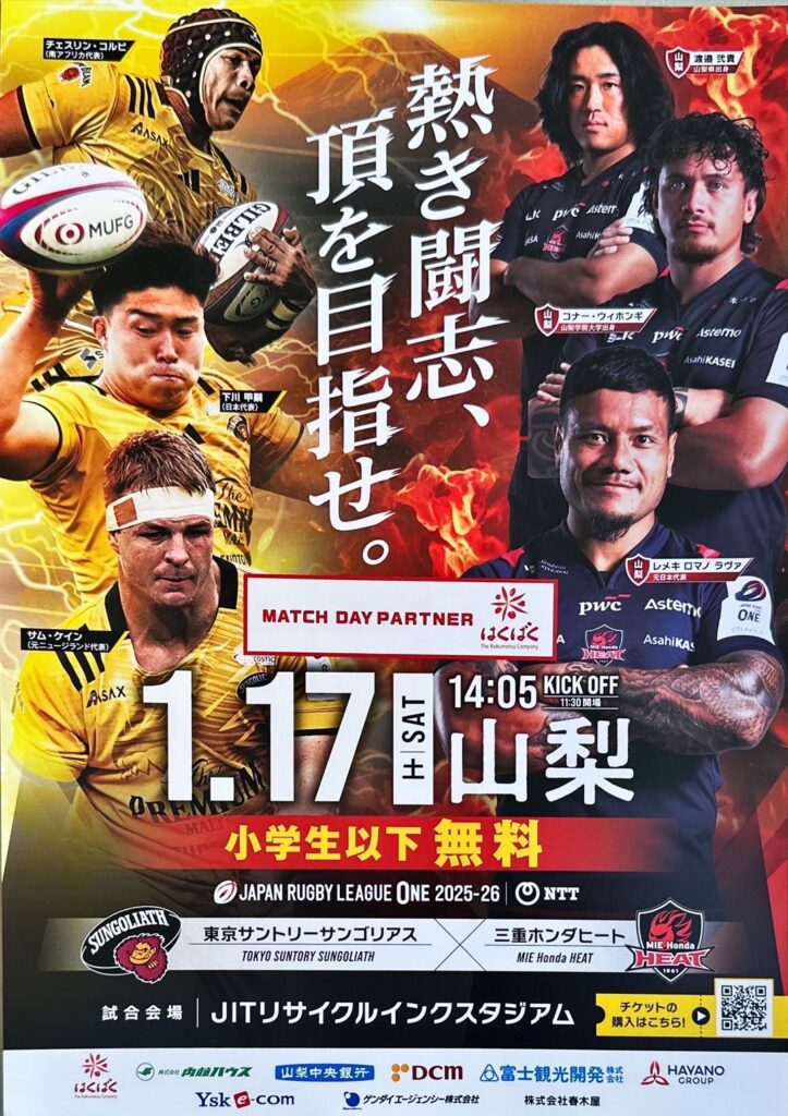 ★前座試合で山梨県中学選抜と東京サンゴリアスアカデミーとの交流試合も開催します。